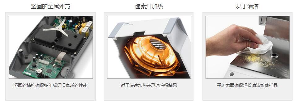 新型 HE83, HE53 快速水分测定仪由瑞士设计,并得益于梅特勒-托利多在精密仪器制造方面的丰富经验。